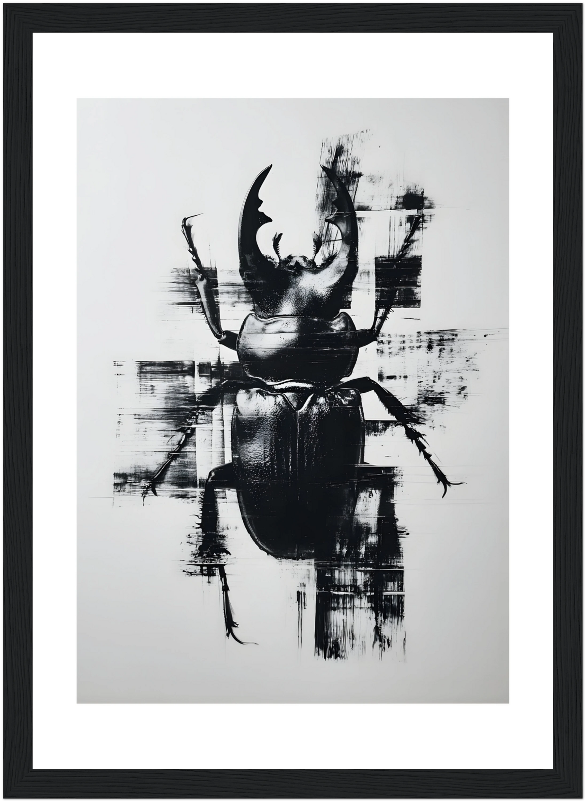 Cette œuvre contemporaine explore la tension entre nature et abstraction à travers la représentation frontale d’un scarabée.