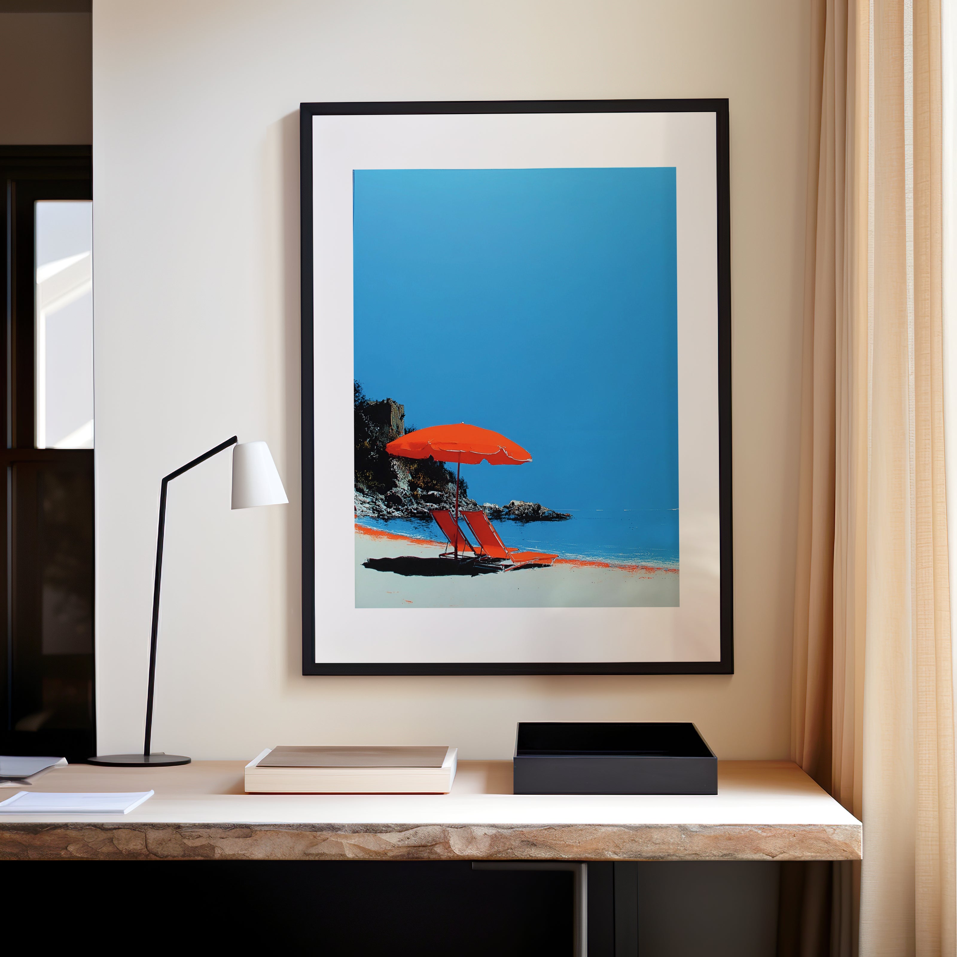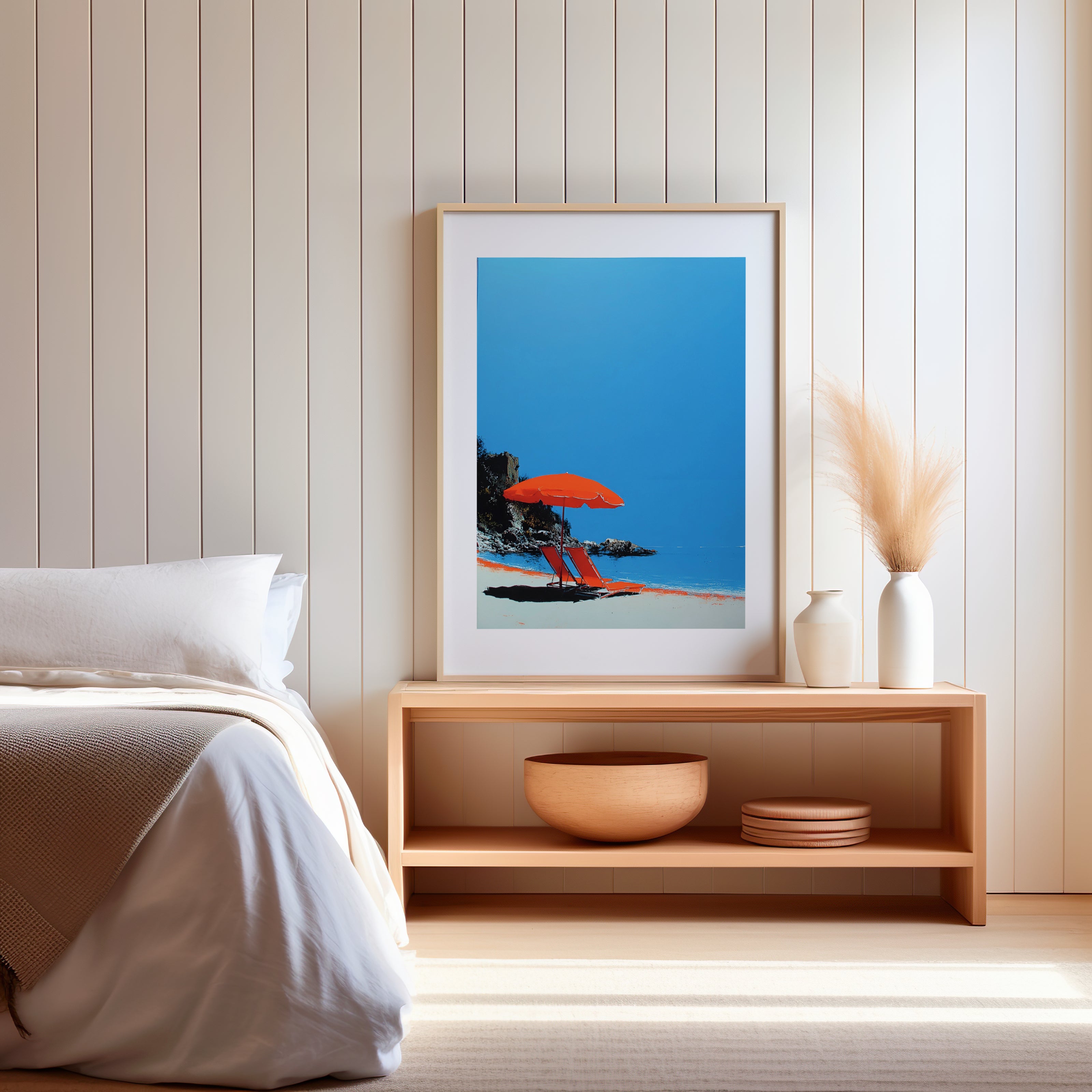 Tableau plage - Rouge, orange et bleu - Art contemporain - Décoration moderne
