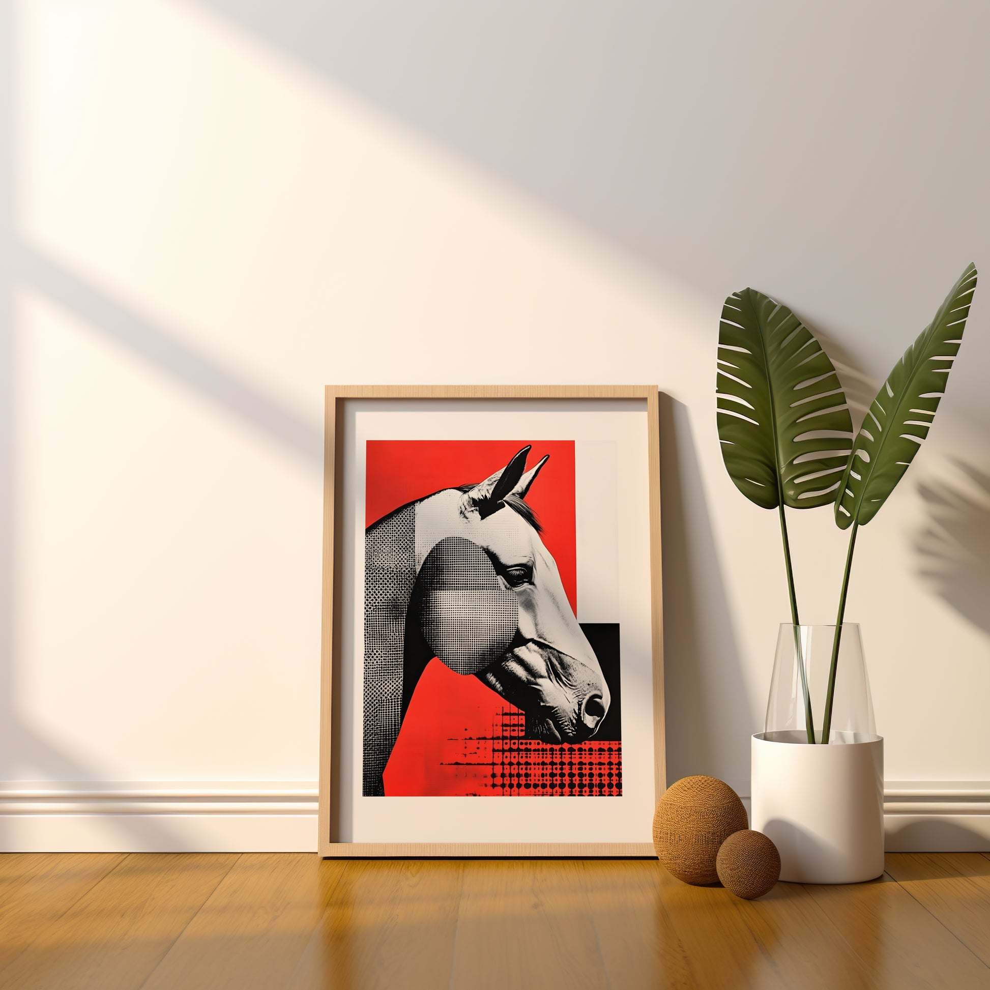 Le cheval représenté dans cette composition confère à ce tableau une présence suspendue entre puissance et sérénité.