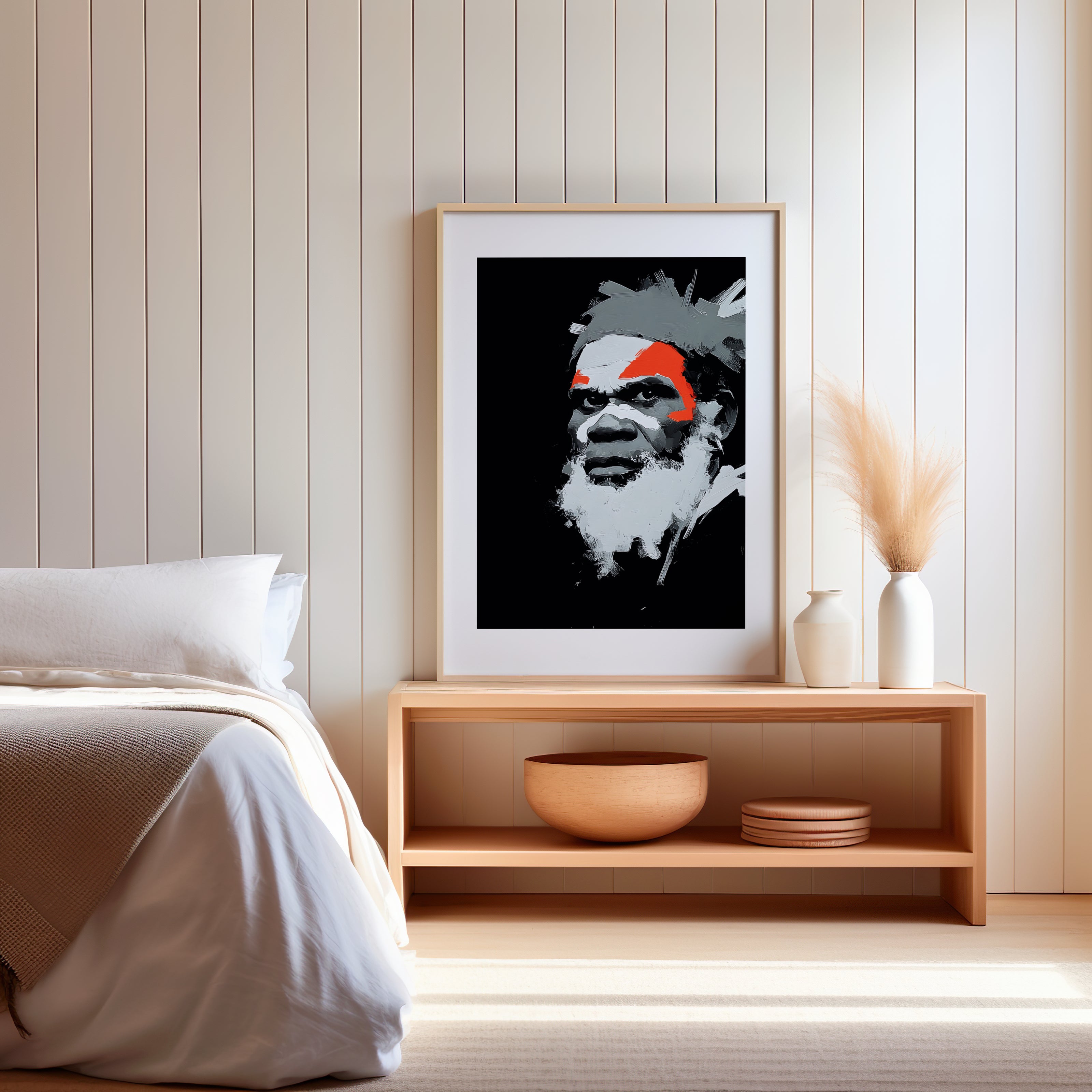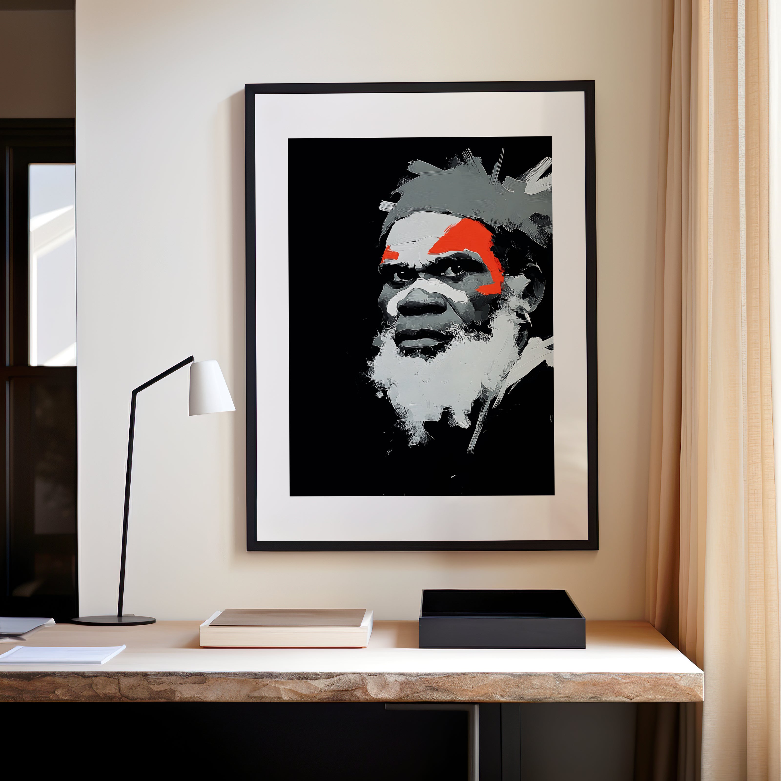 Le regard, fixe et profond, traverse le temps et l’espace, entre colère contenue et sagesse apaisée. C’est une œuvre qui parle de dignité, de trace et de beauté brute.
